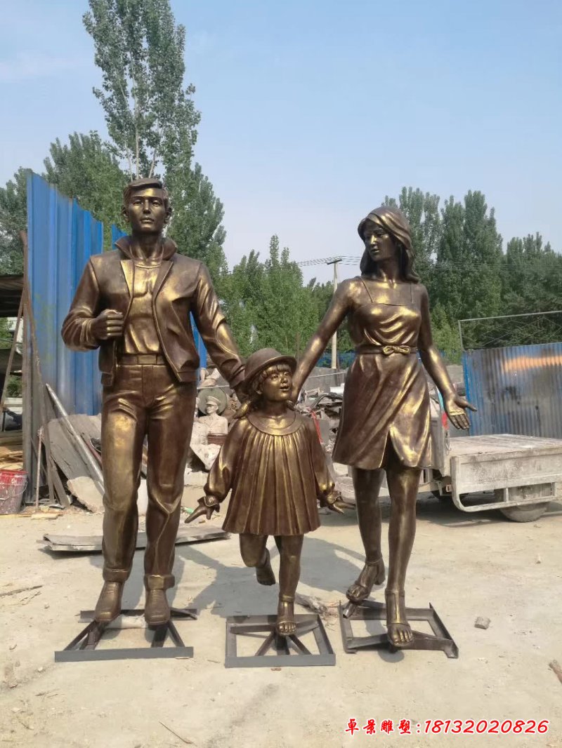 銅雕一家三口