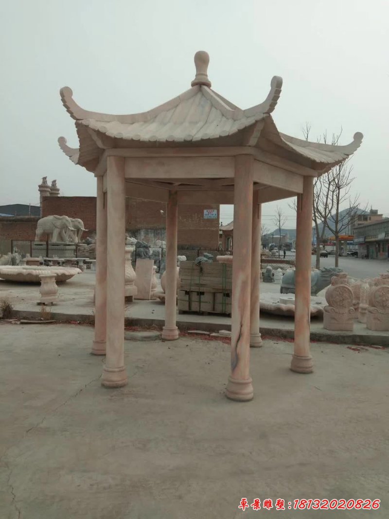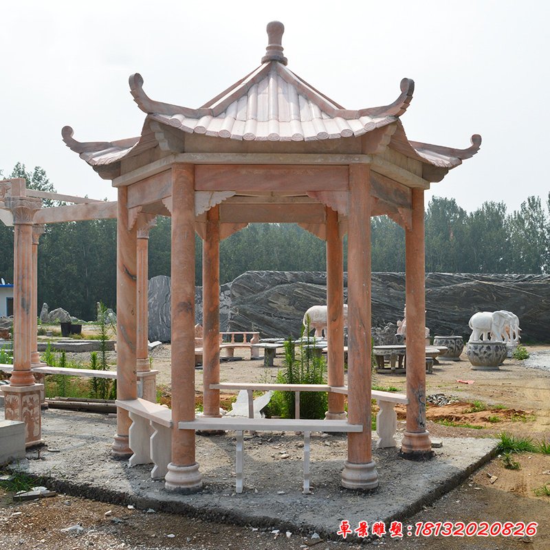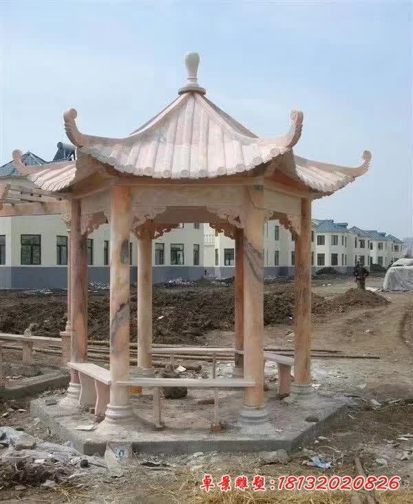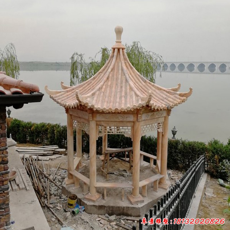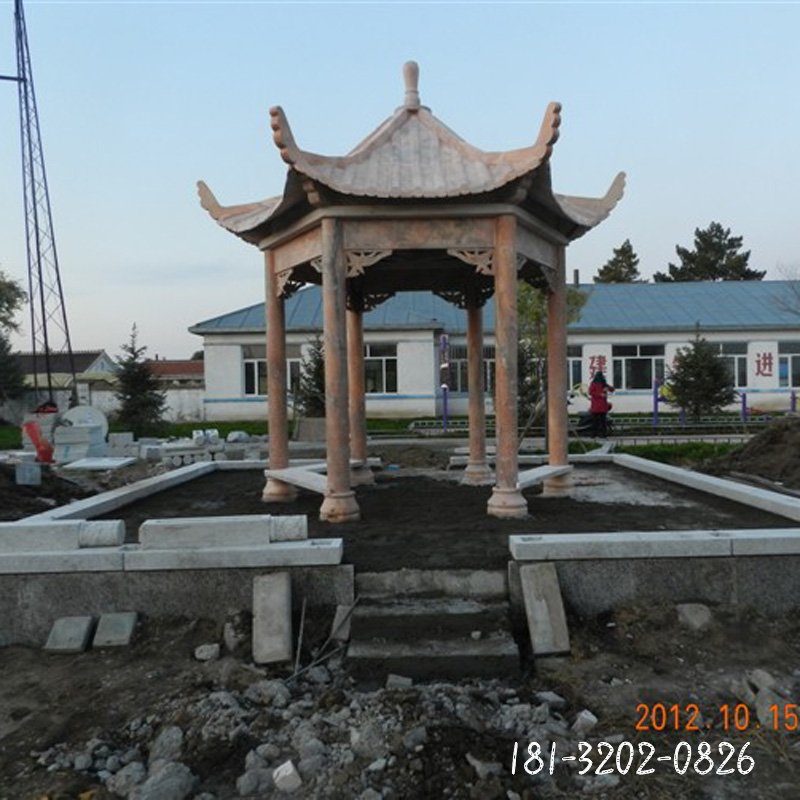 晚霞紅石雕八角涼亭
