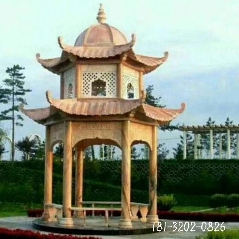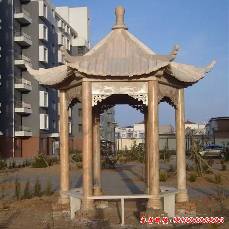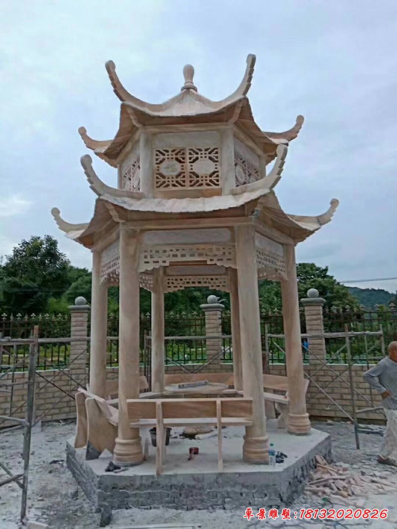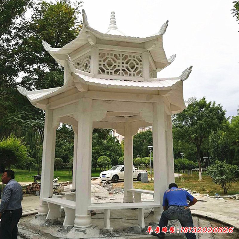 大理石雙層八角涼亭雕塑