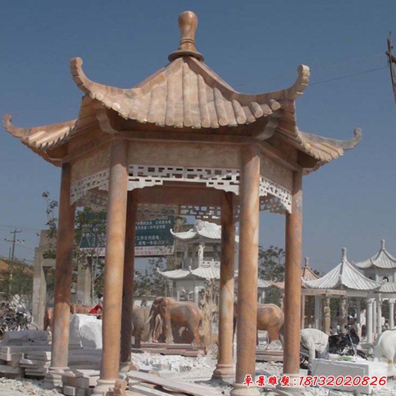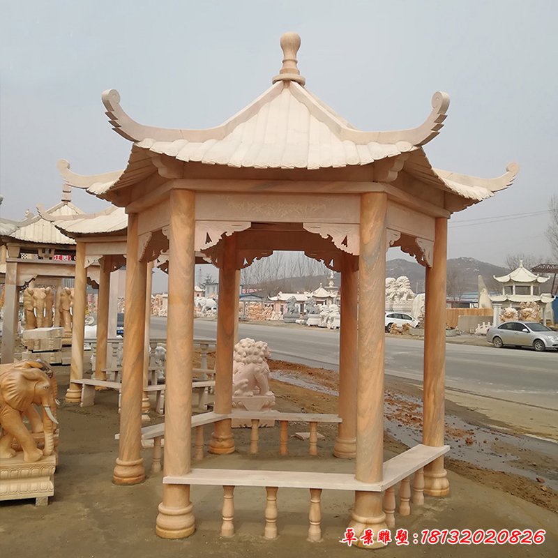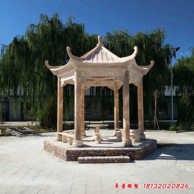 大型六角石涼亭雕塑