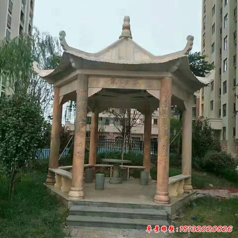 校園六角涼亭石雕