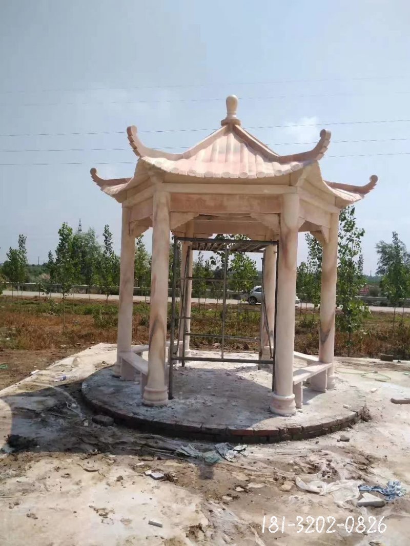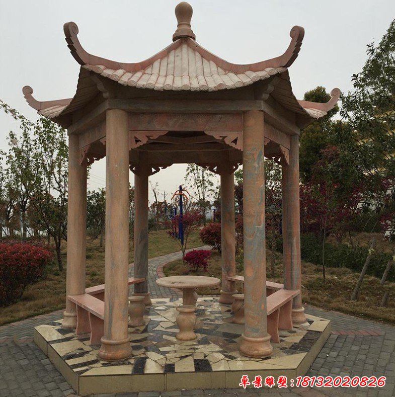 晚霞紅公園六角涼亭石雕