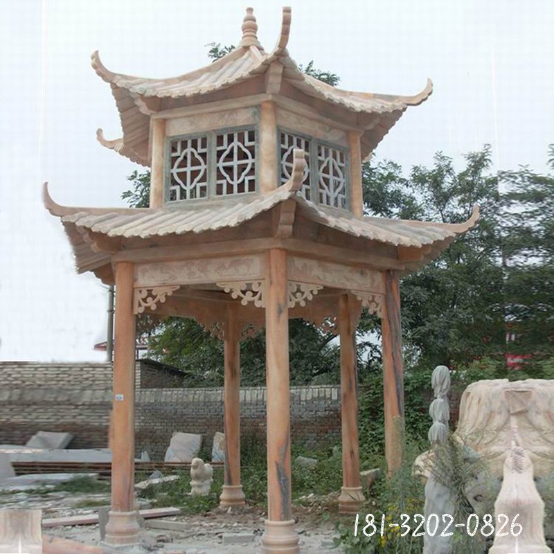 雙層石涼亭建筑雕塑