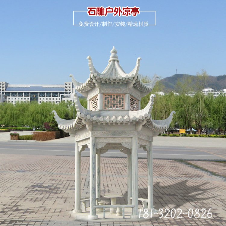 漢白玉涼亭六角亭子
