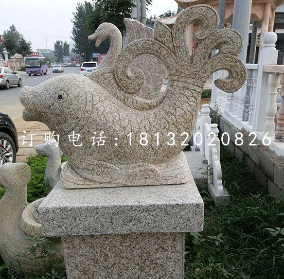 石雕噴泉魚雕塑