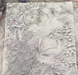 石雕百鳥朝鳳浮雕,漢白玉石浮雕
