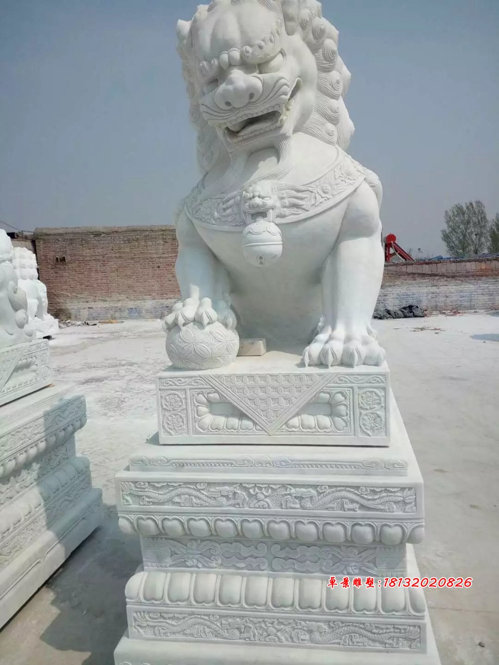 中國人歷來把石獅子視為吉祥之物。在我們生活中各種造型的石獅子隨處可見。古代的官衙廟堂、豪門巨宅大門前,都擺放一對石獅子用以鎮宅護衛,石獅子具有招財守財的作用。 石獅子一般分為中式石獅子和歐式石獅子,中式的石獅子,具有獨特的藝術風格。它們既是珍貴的歷史文物,更是寶貴的藝術珍品,反映出我國源遠流長的文化傳統和石雕藝術,值得我們觀賞和珍惜!下面卓景雕塑為大家介紹一下常見的漢白玉獅子雕塑。