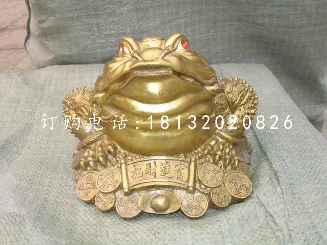 銅雕金蟾的造型很多,一般為坐蹲于金元之上的三足蟾蜍,背負錢串,豐體肥碩,滿身富貴自足,有吐寶發財,財源廣進的美好寓意,所以民間有俗語得金蟾者必大富也。放置此物于家居或商鋪之中,定然財運亨通,大富大貴自古以來就有用蟾宮折桂來比喻考取進士。傳說月宮中有三條腿的蟾蜍,而后人也把月宮叫蟾宮。而今天的蟾蜍作為一種裝飾品走進了千家萬戶,他不僅有裝飾作用,還可以避邪、招財。銅蟾蜍的擺放也是很有講究的,它的頭朝門可以為您吸財,在它的尾部壓上錢,代表可以雙倍的為您滾財。人們通常把蟾蜍叫金蟾,古語講家有金蟾,財源綿綿。