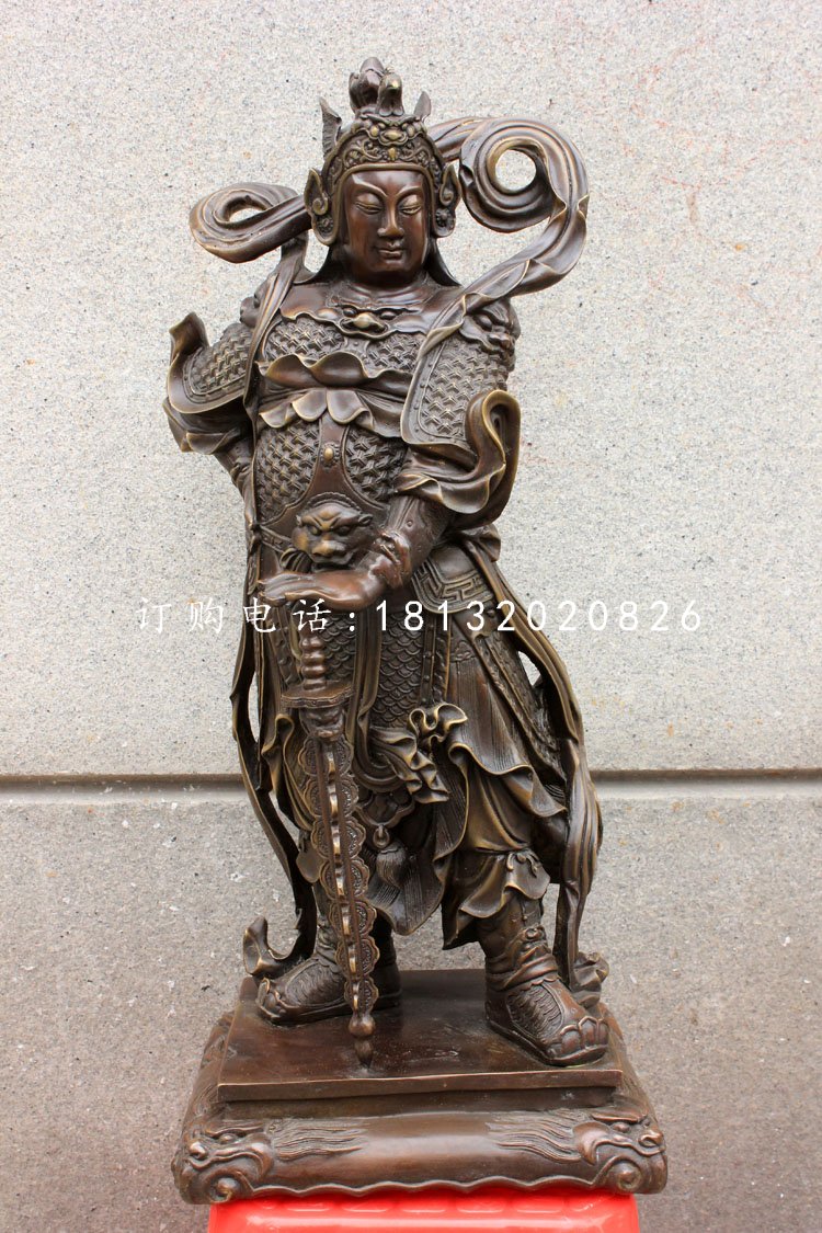 韋駝菩薩現天大將軍身,擔當佛教中驅除邪魔,保護佛法的重任,為佛教中護法金剛力士的代表之一相傳,浙江臨安天目山是韋馱菩薩的道場。