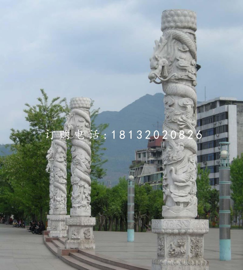 石雕龍柱的的全身是纏繞著龍的,還有美麗的云板,在最頂端還有蹲獸,生動形象,栩栩如生。預示著吉祥、華與誠信。可以擺在辦公室內作為裝飾,也可以作為家居生活只用,還可以在園林里來欣賞,還可以在廣場路邊成為景觀與地標。
