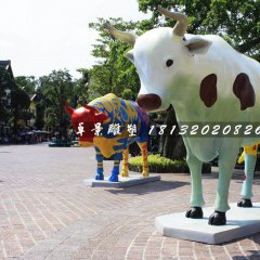 彩繪牛雕塑,公園玻璃鋼雕塑