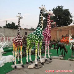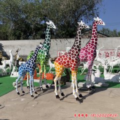 彩色長頸鹿雕塑,玻璃鋼動物雕塑