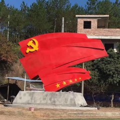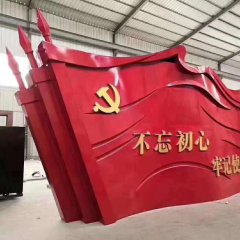 不銹鋼不忘初心牢記使命黨旗雕塑