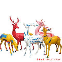 玻璃鋼彩色梅花鹿 抽象動物雕塑