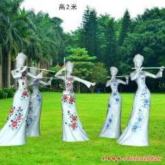 玻璃鋼演奏樂器的古代美女雕塑