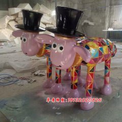 玻璃鋼彩色卡通小羊雕塑,彩繪小羊雕塑