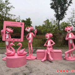 玻璃鋼粉紅豹雕塑組合