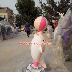 玻璃鋼海豚戲球雕塑,玻璃鋼卡通雕塑