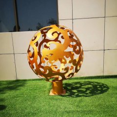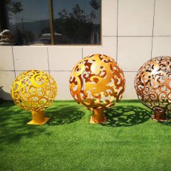不銹鋼花朵圖案鏤空球雕塑