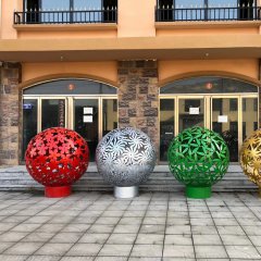 不銹鋼彩色花朵鏤空球雕塑