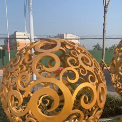 不銹鋼金色鏤空球雕塑