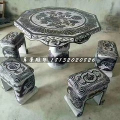 中國(guó)黑石材圓桌凳雕塑