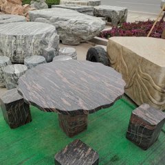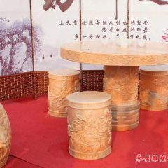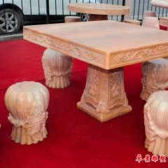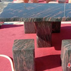 晚霞紅方桌圓凳石雕