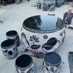 青石仿古荷花浮雕圓桌凳