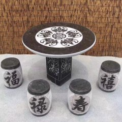 福祿壽喜浮雕仿古石桌凳