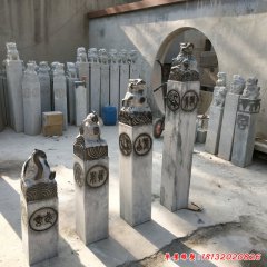 漢白玉拴馬柱,廣場拴馬樁石雕
