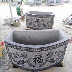 荷花鯉魚石浮雕水缸,青石仿古水缸
