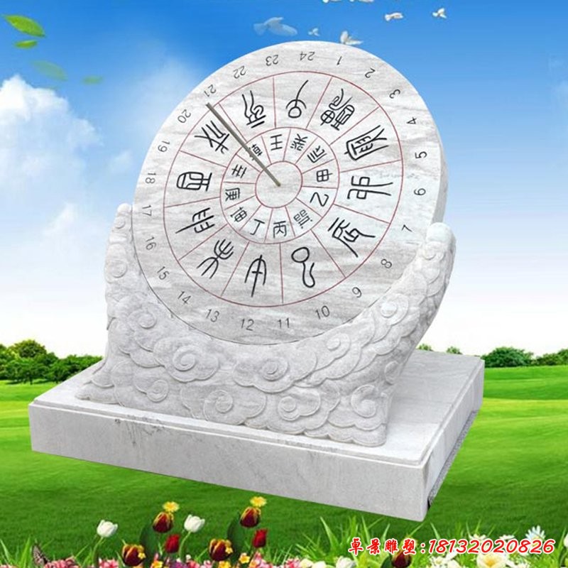 石雕日晷是一種利用太陽投影指示時間的工具,由晷盤和晷針組成。晷盤是一個圓盤,晷面上有刻度;晷針安裝在晷盤中央與盤面垂直。太陽照到針上,在盤面上產生投影。用日晷測時間不是根據日影的長度,而是根據日影的方向。