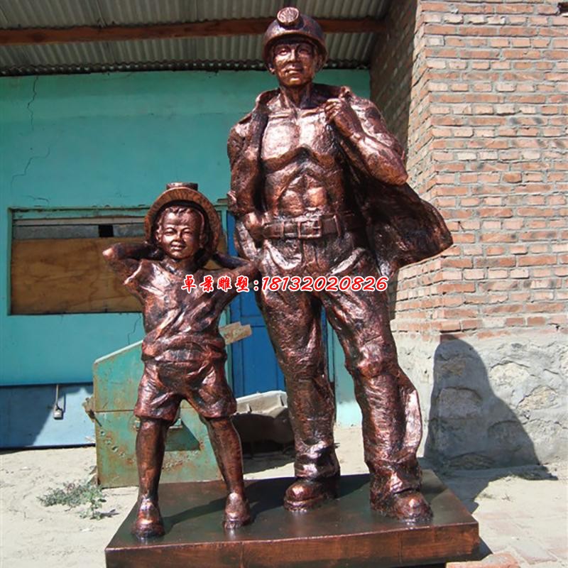 礦工人物銅雕