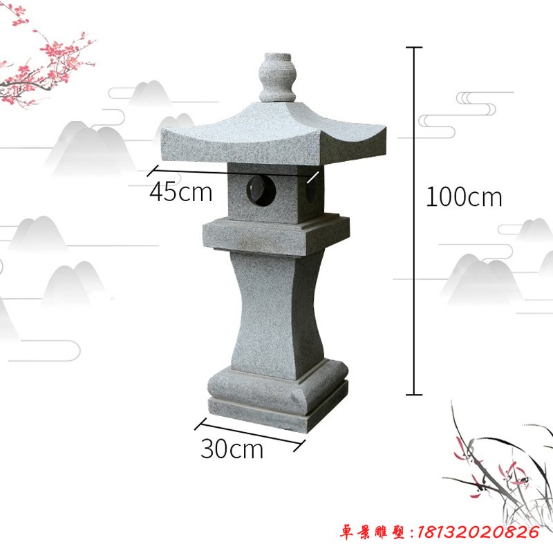 石燈最早雛形是中國供佛時點的燈,也就是供燈的形式。石燈被用于園林、庭院的裝飾始于十六世紀晚期的安士桃山時代,當時由于茶道的大發展,石燈常被作為一種露天裝飾物而廣泛進入庭院裝飾,隨著石燈用途的改變,石燈的樣式也就更加多樣化了,例如出現了三角或四角的雪見燈籠,同時對竿和笠的部分也給與新的設計,石燈的樣式由模仿進入創新,日本的石燈除了少量用于寺院以外,大多數的石燈是用于庭院、園林裝飾使用。