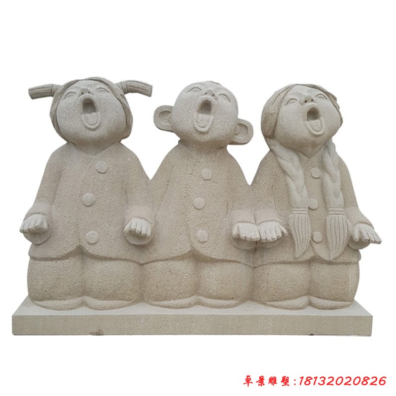 兒童天真無邪、充滿陽光,是祖國的花朵,是新生的瞎想給人以希望和憧憬。因此,對于兒童石雕的設計往往都以表現童真和希望為母的,造型方面大都以生活中的某些特點細節為雛形。也有部分兒童石雕以特殊的造型刻畫童趣以求表達兒童對于成人世界的期望與期待。