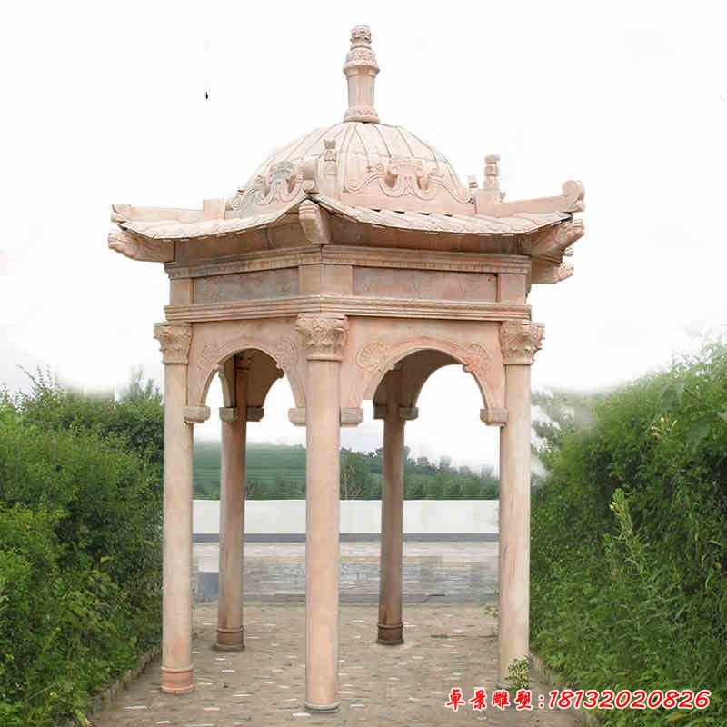 石雕涼亭的空間構(gòu)造可以是三維的立體形態(tài),也可以兼?zhèn)淠撤N平面形態(tài);既可以依附于某種載體,又可相對獨立地存在。一般地說來,為適合特定視點的觀賞需要或裝飾需要,石雕涼亭相對圓雕的突出特征是經(jīng)形體壓縮處理后的二維或平面特性。石雕涼亭空間壓縮程度的選擇,通常要考慮表現(xiàn)對象的功能、主題、環(huán)境位置和光線等因素,其中環(huán)境與光線因素起著決定性作用。