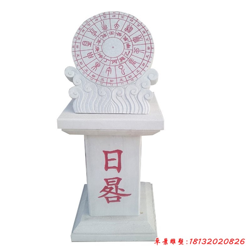 石雕日晷是一種利用太陽投影指示時間的工具,由晷盤和晷針組成。晷盤是一個圓盤,晷面上有刻度;晷針安裝在晷盤中央與盤面垂直。太陽照到針上,在盤面上產生投影。用日晷測時間不是根據日影的長度,而是根據日影的方向。