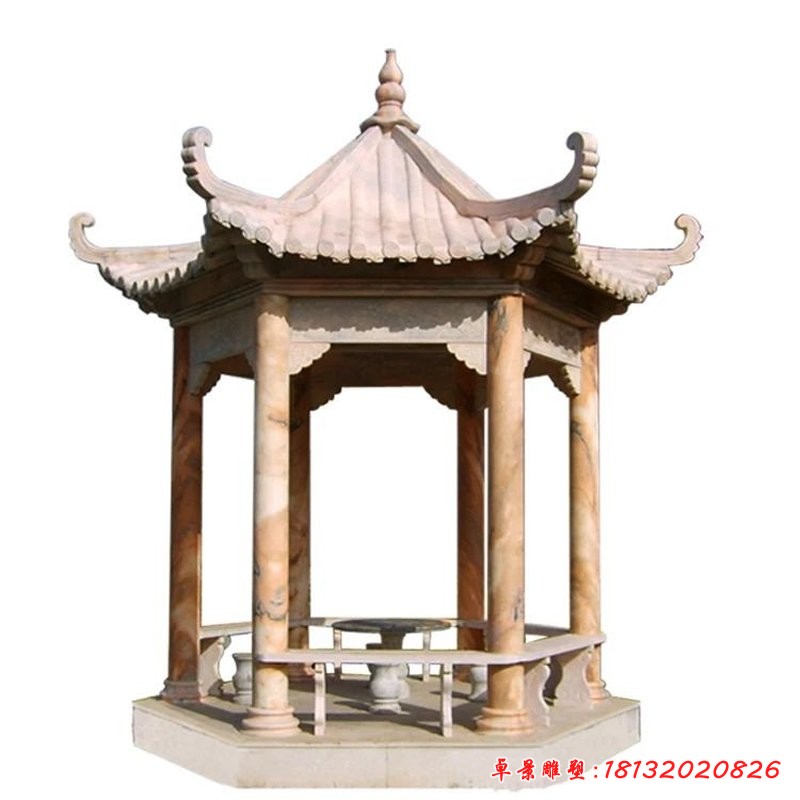 石涼亭從形狀上來說,有四角亭、六角亭,八角涼亭,扇形涼亭,雙層涼亭,三層涼亭之分。石雕涼亭體量小,平面嚴謹。自點狀傘亭起,簡樸而龐大,根本上都是規矩多少形體,或再加以組合變形。石雕涼亭也可以和其他園林修建如花架、長廊、水榭組合成一組修建。石涼亭的空間構造可以是三維的立體形態,也可以兼備某種平面形態;既可以依附于某種載體,又可相對獨立地存在。