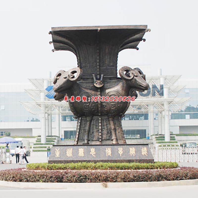 羊是大自然的天使,它性情溫和、無私奉獻、溫馴可愛,是最美麗的動物。十二生肖中,羊排第8位。 銅雕四羊方尊作為商朝晚期偏早青銅器。銅雕四羊方尊在當時屬于一種禮器,也是祭祀用品。是中國現存商代青銅器中最大的銅鼎,現藏于中國國家博物館。四羊方尊器身方形,方口,大沿,頸飾口沿外侈,每邊邊長為52.4厘米,其邊長幾乎接近器身58.3厘米的高度。長頸,高圈足。頸部高聳,四邊上裝飾有蕉葉紋、三角夔紋和獸面紋。尊的中部是器的重心所在。尊四角各塑一羊。肩部四角是四個卷角羊頭,羊頭與羊頸伸出于器外,羊身與羊腿附著于尊腹部及圈足上。尊腹即為羊的前胸,羊腿則附于圈足上,承擔著尊體的重量。