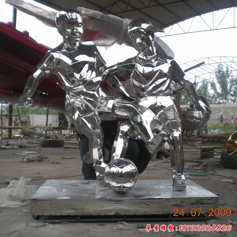 不銹鋼人物踢足球雕塑