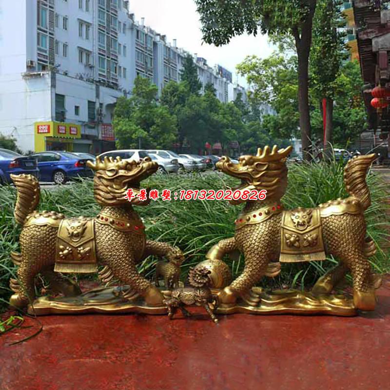 麒麟是中國神話里的靈物,集中了獅子頭、鹿角、老虎的眼睛、蛇鱗、牛尾于一身,是古代的仁獸、神獸。銅麒麟和鳳神、龍神、龜神,成為四靈獸,因此得到人們的崇拜和尊敬。在中國眾多的民間傳說當中,關于麒麟的故事并不多,但是它卻真實的存在于人們的心中,體現出了它的珍貴。